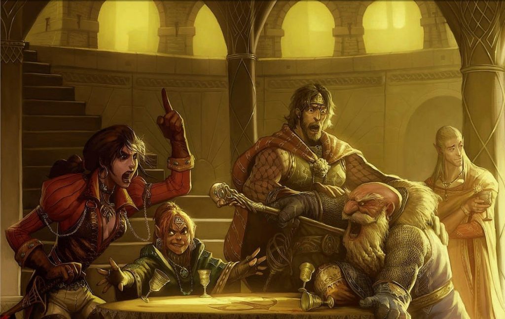 The party picked up some supplies from Barthen’s Provisions & turned in to the Stonehill Inn, where Toblin the barkeep was returning from the meeting himself. He took their dinner orders and packed them a lunch to go for the next day’s journey. Halvin, now relocated to the bar with some glog, regaled them with tales of the supernatural forces at work in the wood – banshees, faeries, pixies, and all sorts of fey creatures.